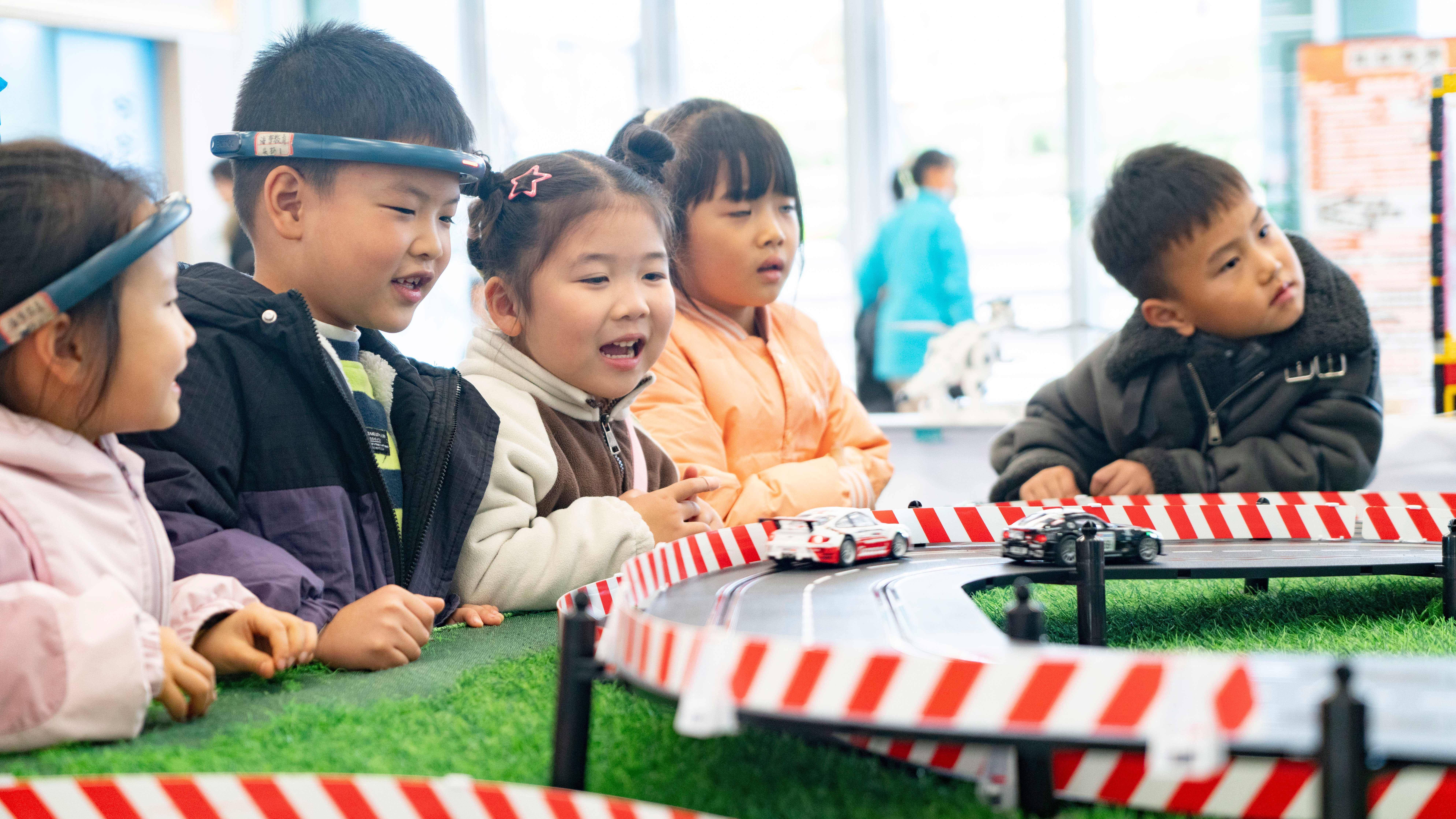 小朋友们体验脑控赛车。人民网张志强摄