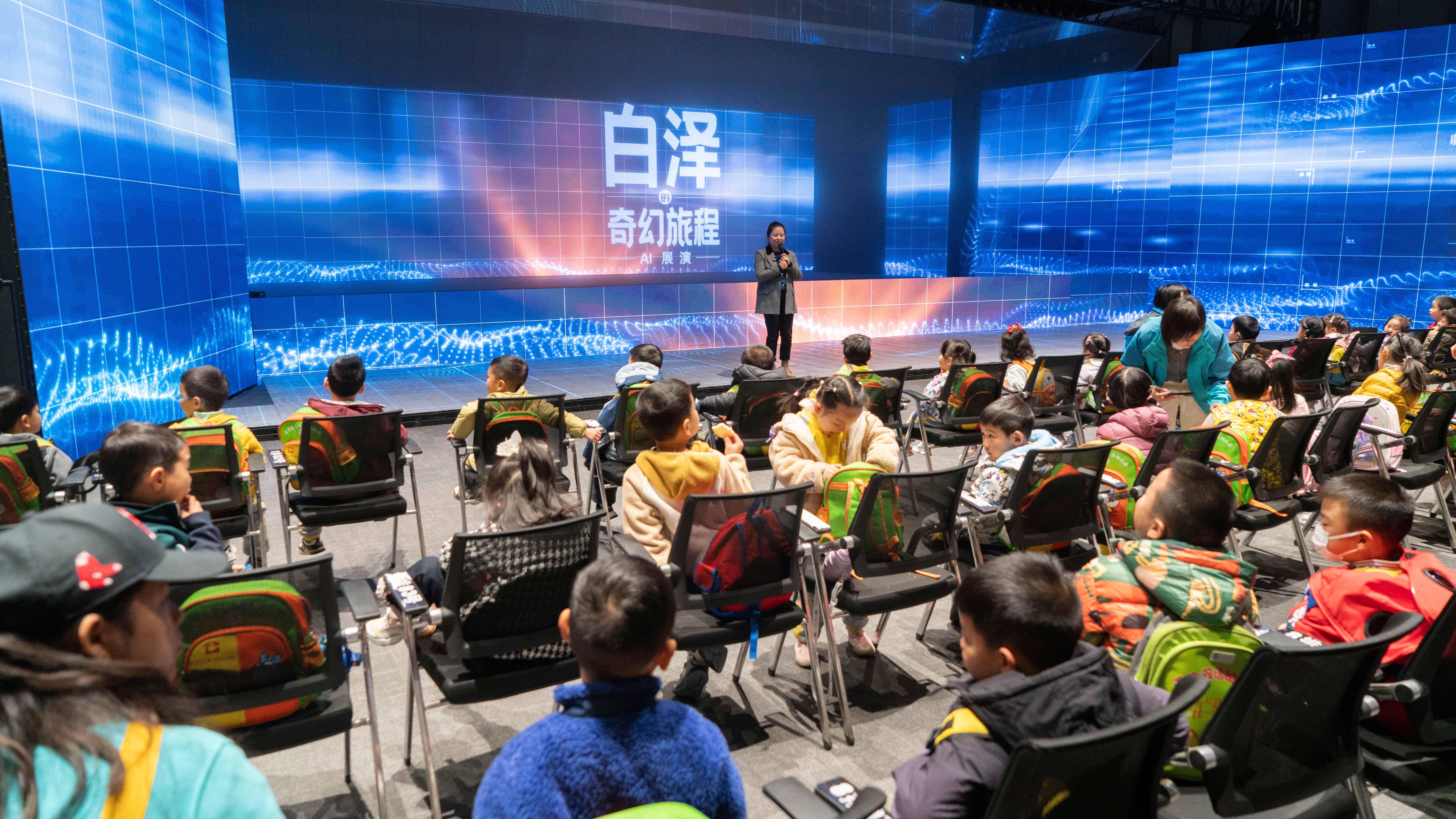 小朋友们观看AI全息剧。人民网张志强摄
